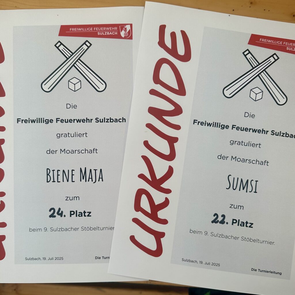 Zwei Moarschaften des Imkervereins Pichl bei Wels nahmen am Stöbelturnier der Freiwilligen Feuerwehr Sulzbach teil. Insgesamt stellten sich 44 Moarschaften dem sportlichen Wettbewerb.